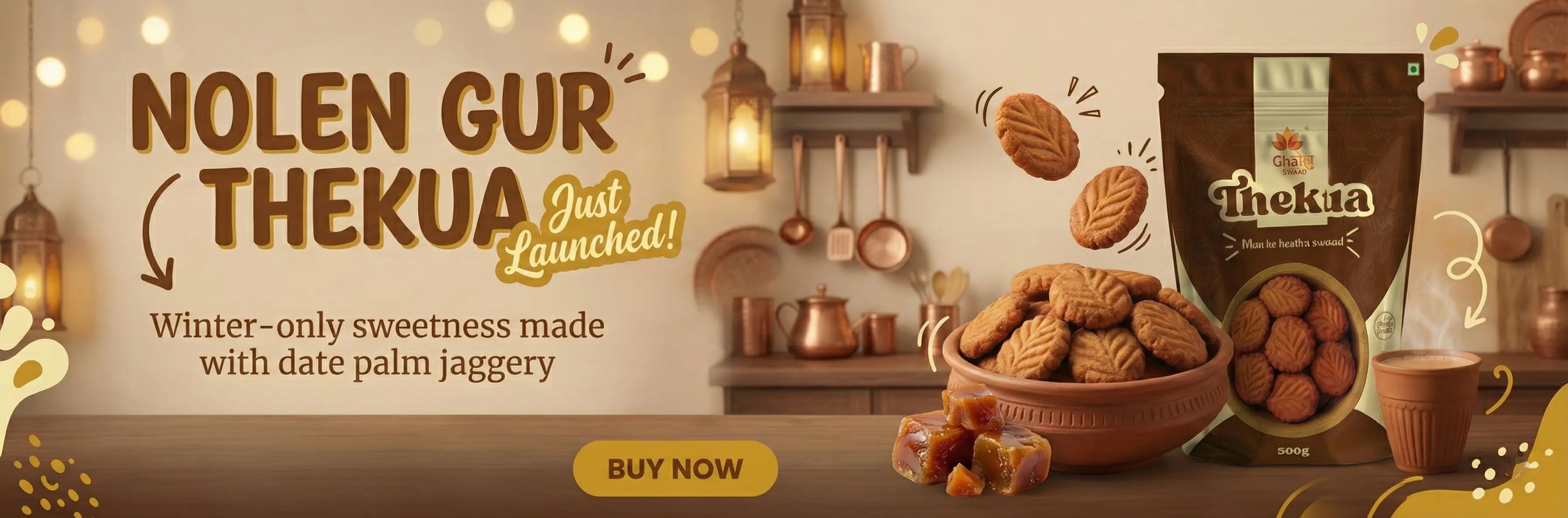 Nolen Gur Thekua – Premium Jaggery Thekua | GHARELU SWAAD (500g)